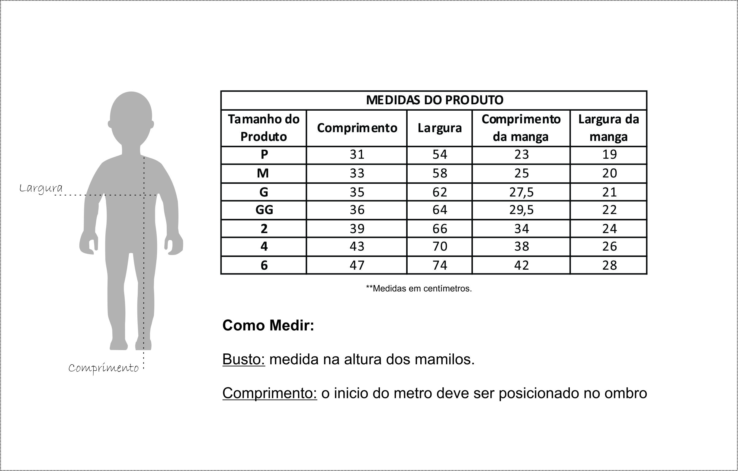 OBS: pode haver variações nas medidas de 1 cm para mais ou para menos.