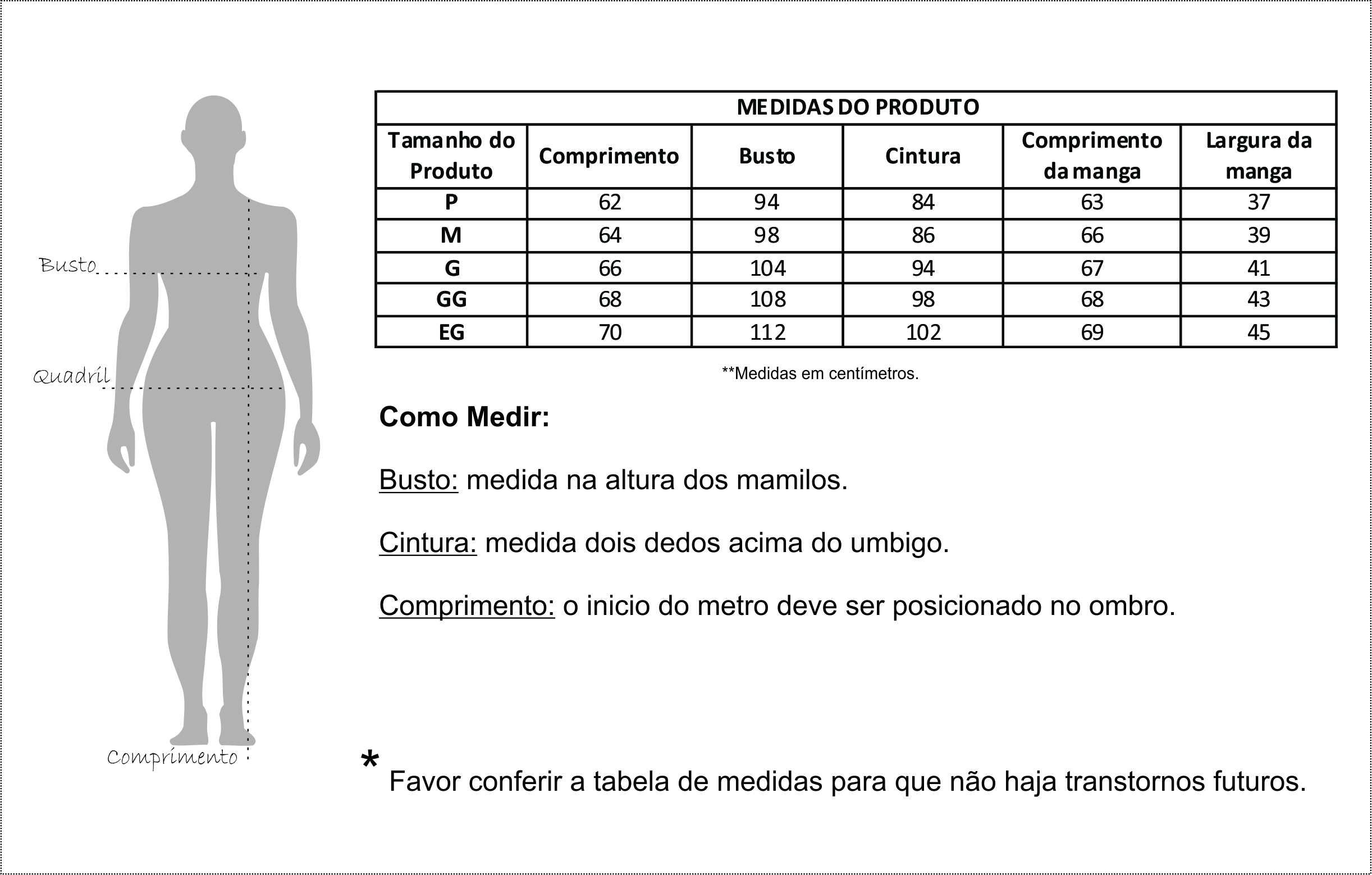 OBS: pode haver variações nas medidas de 1 cm para mais ou para menos.