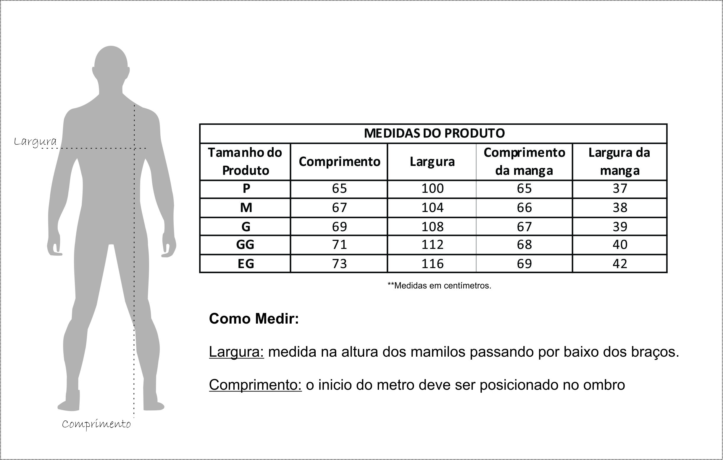 OBS: pode haver variações nas medidas de 1 cm para mais ou para menos.