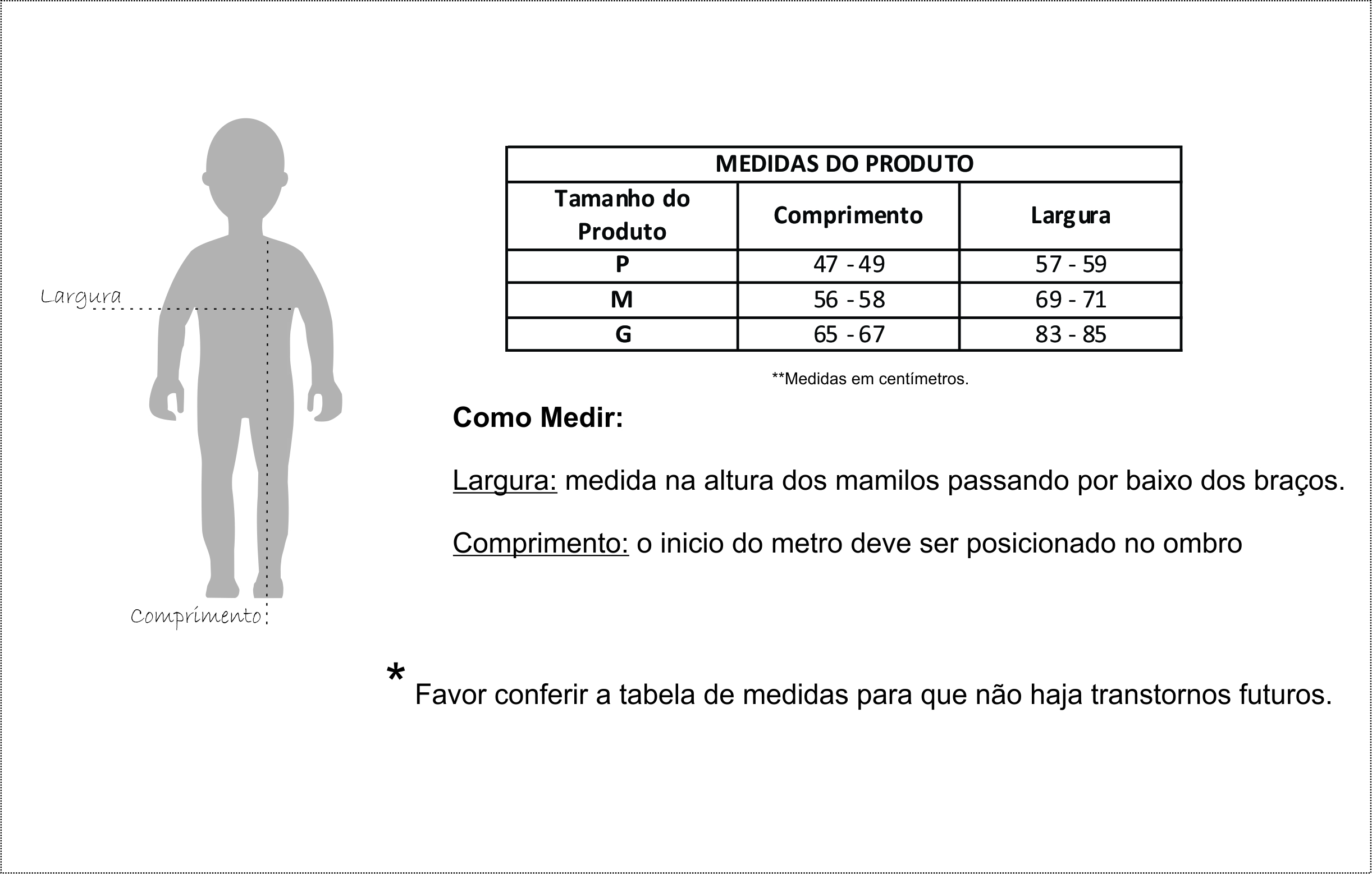 OBS: pode haver variações nas medidas de 1 cm para mais ou para menos.