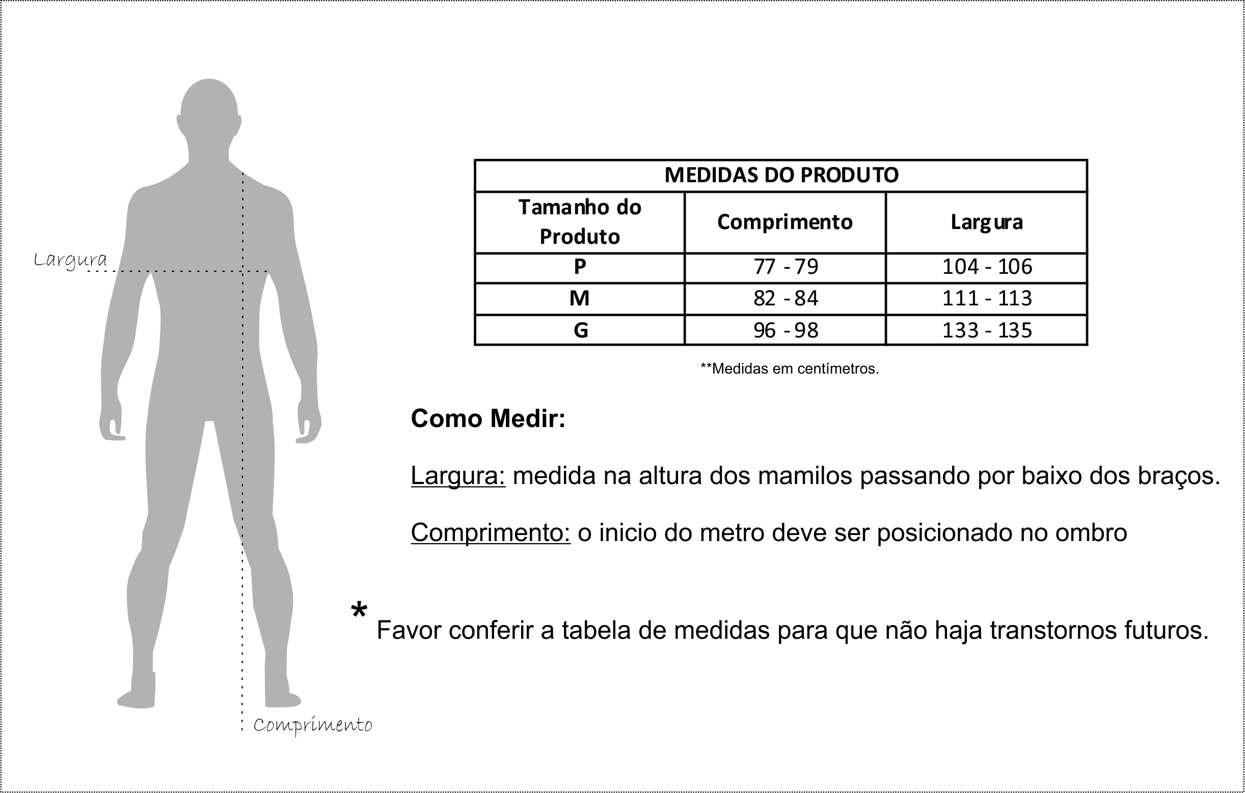 OBS: pode haver variações nas medidas de 1 cm para mais ou para menos.