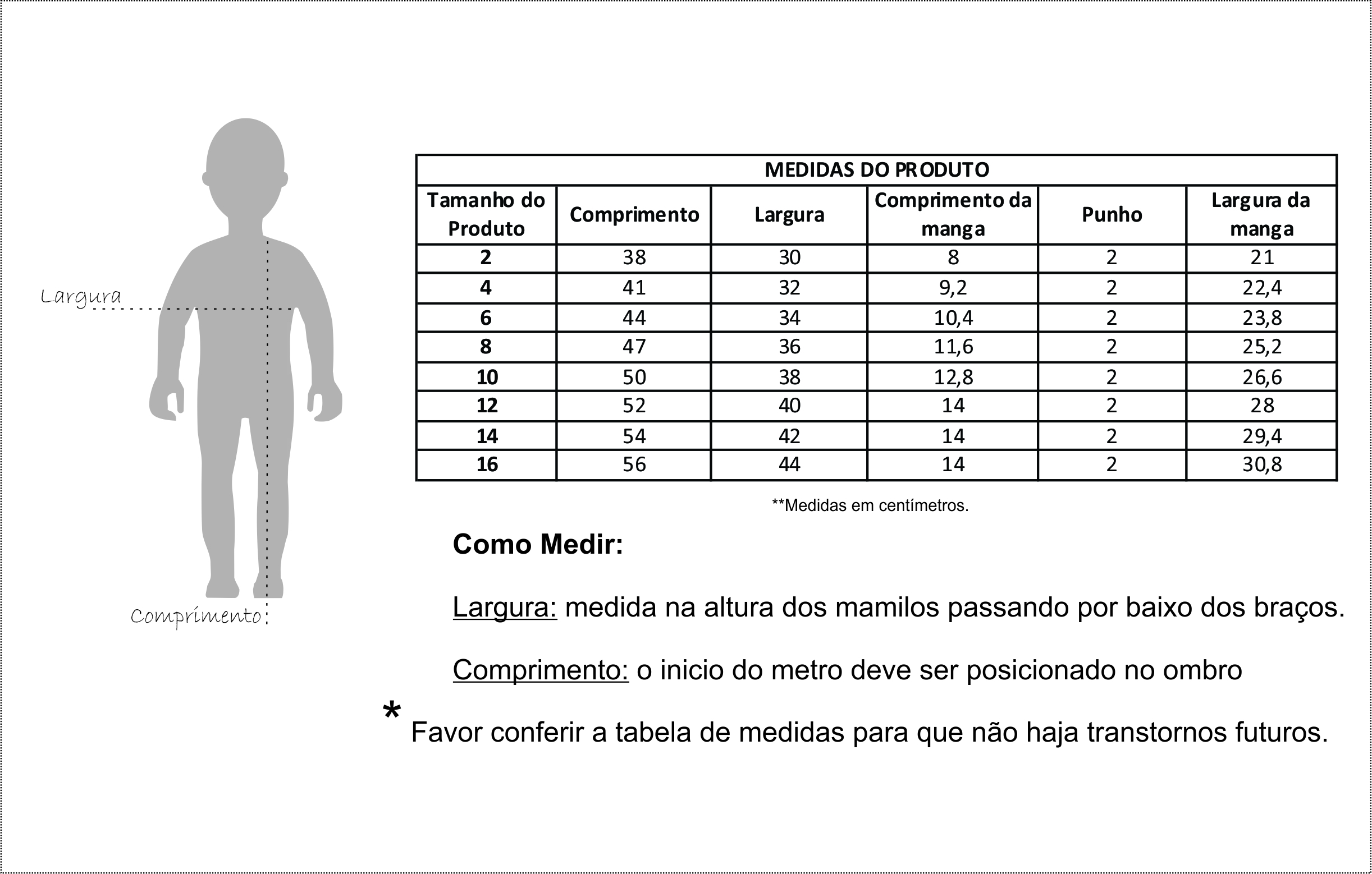 OBS: pode haver variações nas medidas de 1 cm para mais ou para menos.