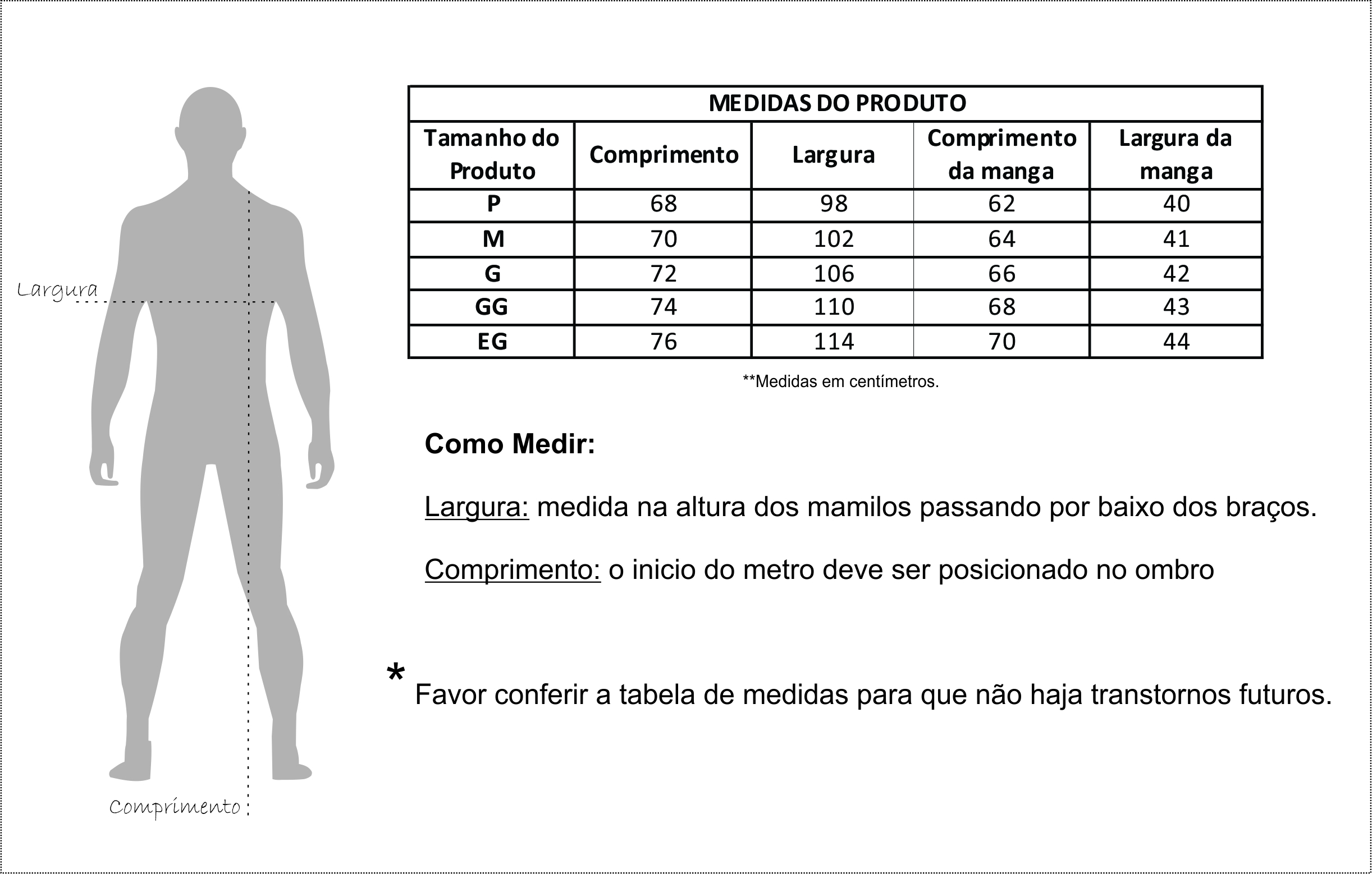 OBS: pode haver variações nas medidas de 1 cm para mais ou para menos.