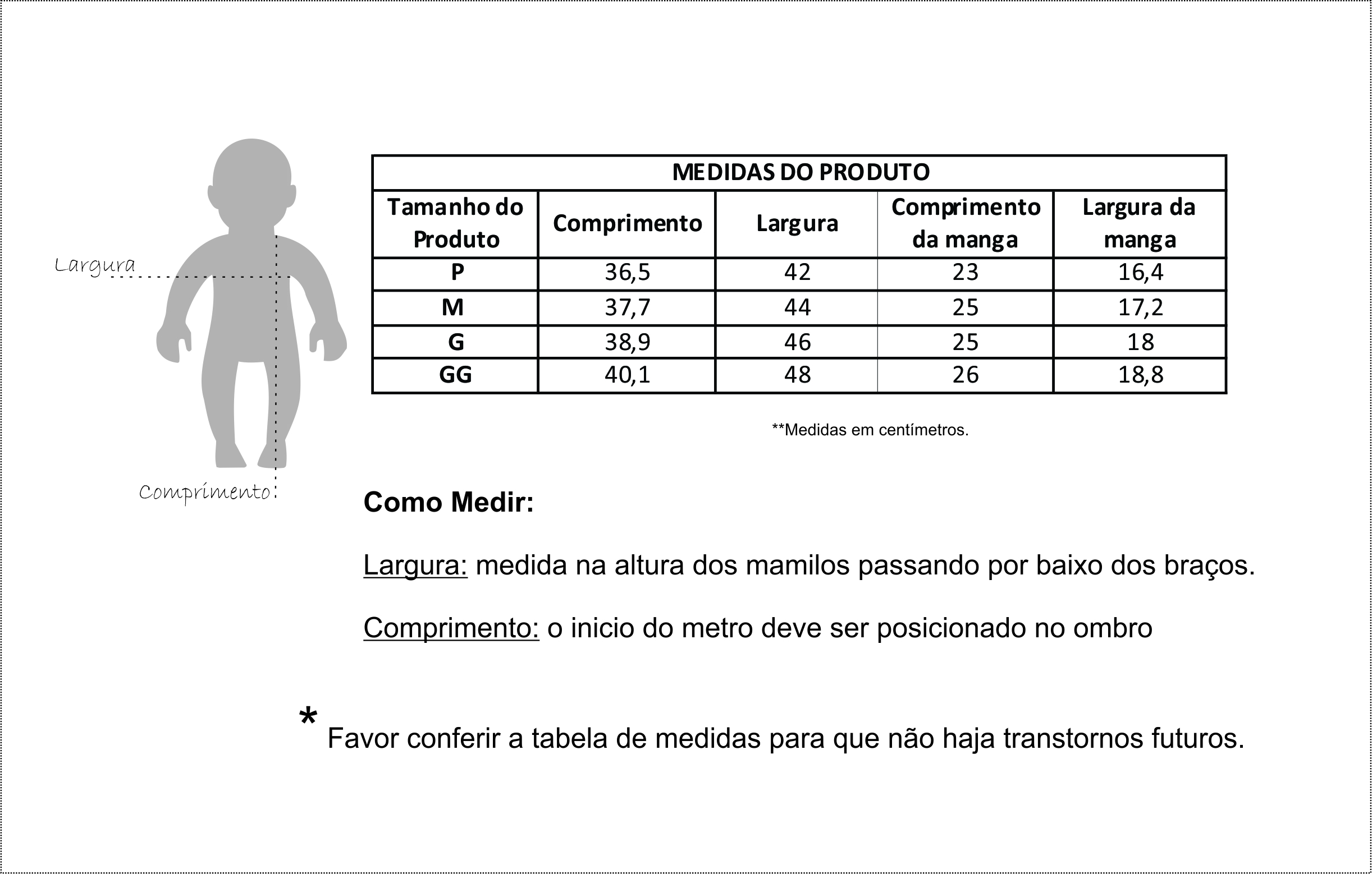 OBS: pode haver variações nas medidas de 1 cm para mais ou para menos.